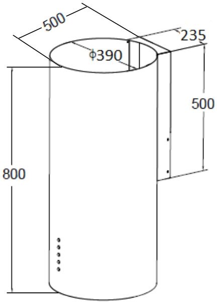 Form factor: dome, operating modes: exhaust / circulation, maximum productivity: 500 m³/hour, installation type: wall-mounted, lighting type: halogen lamp, installation width: 90 cm, additional functions: intensive