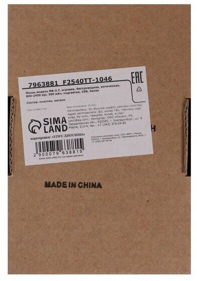 MB-2.7, gaming, wireless, optical, 800-2400 dpi, 500 mAh, backlight, USB, white