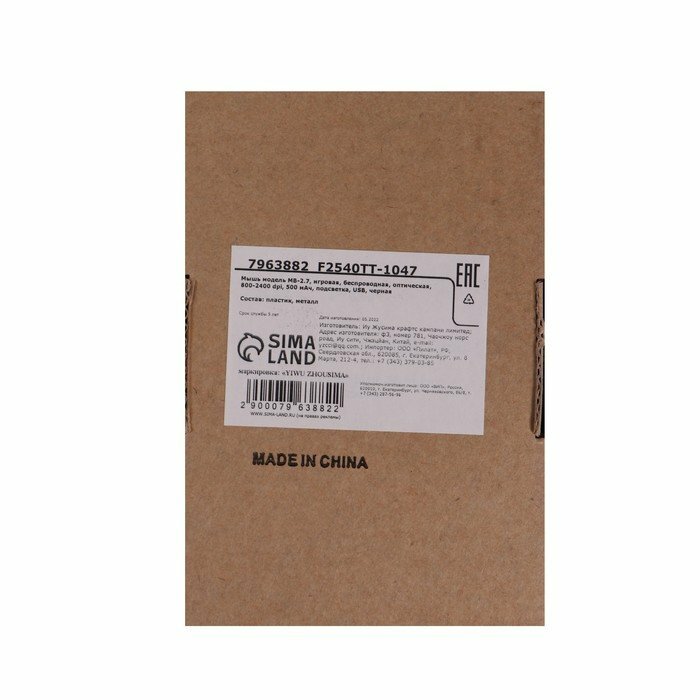 MB-2.7, gaming, wireless, optical, 800-2400 dpi, 500 mAh, backlight, USB, black