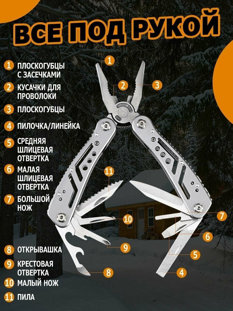 Multi-tool - universal men's accessory of a hiking survival kit, for car, bicycle, travel, tourism, hunting and fishing, camping, rescue, army, tactical and military equipment