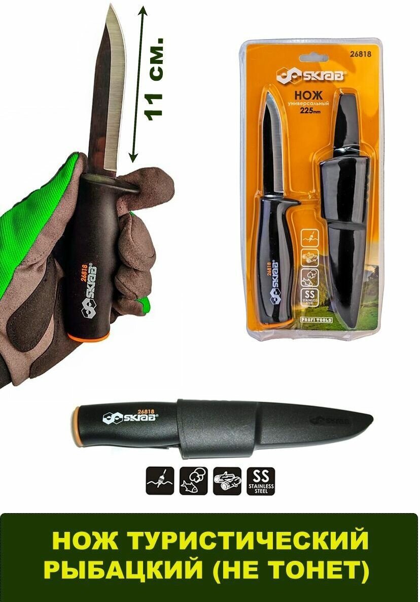 Knife with sheath, universal, float knife. Length 225mm. SS. SKRAB 26818