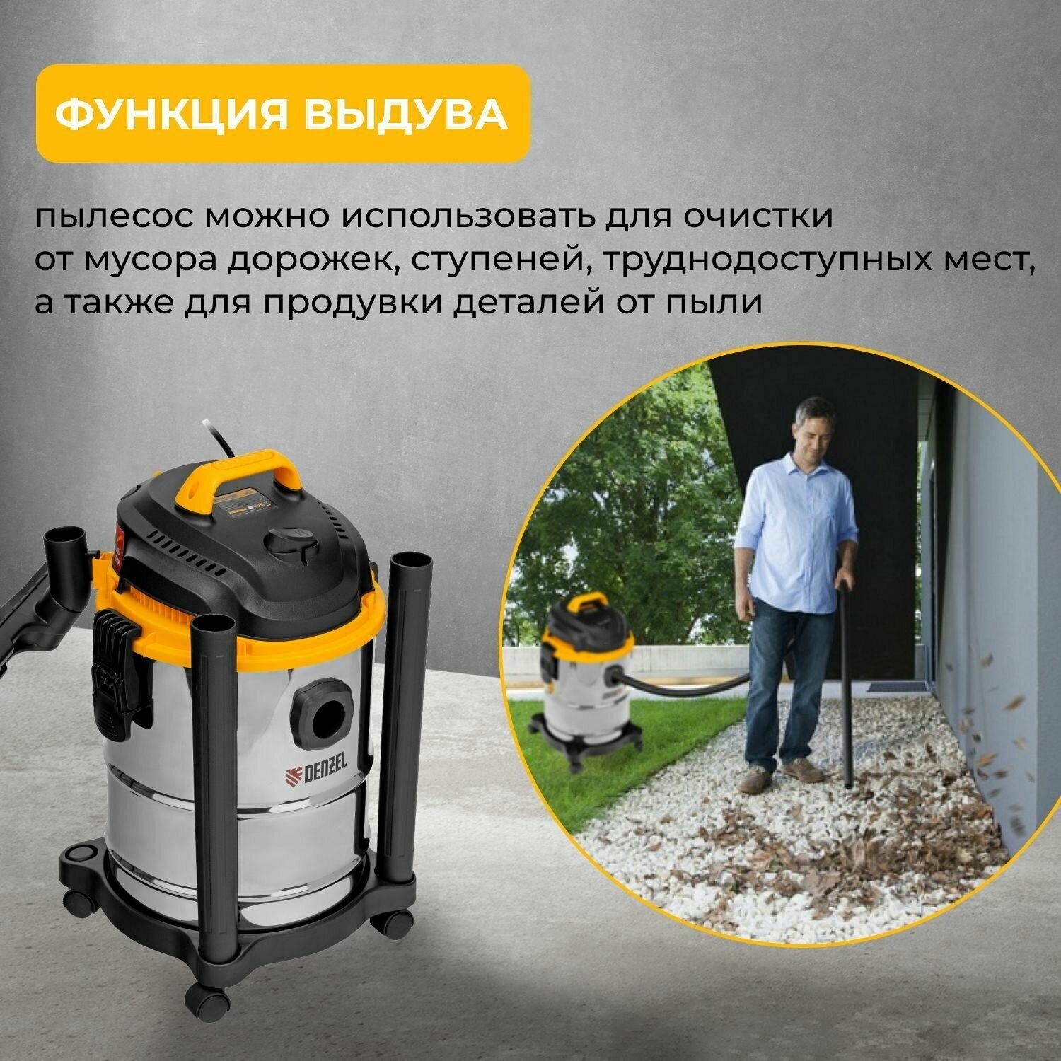 Construction vacuum cleaner Denzel SVC15, 1200 W, tank 15 l, hose 2 m 28201