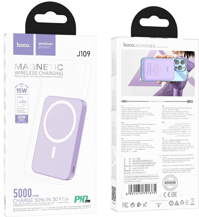 Capacity: 5000 mAh, compatibility: MagSafe, wireless charging, fast charging, max. output current: 2 A, features: charge indicator, weight: 135 g