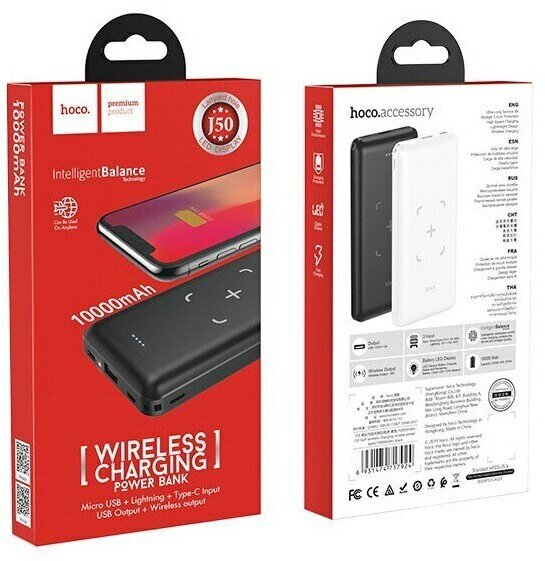 Portable with wireless charging HOCO J50 Surf, 10000 mAh, Black