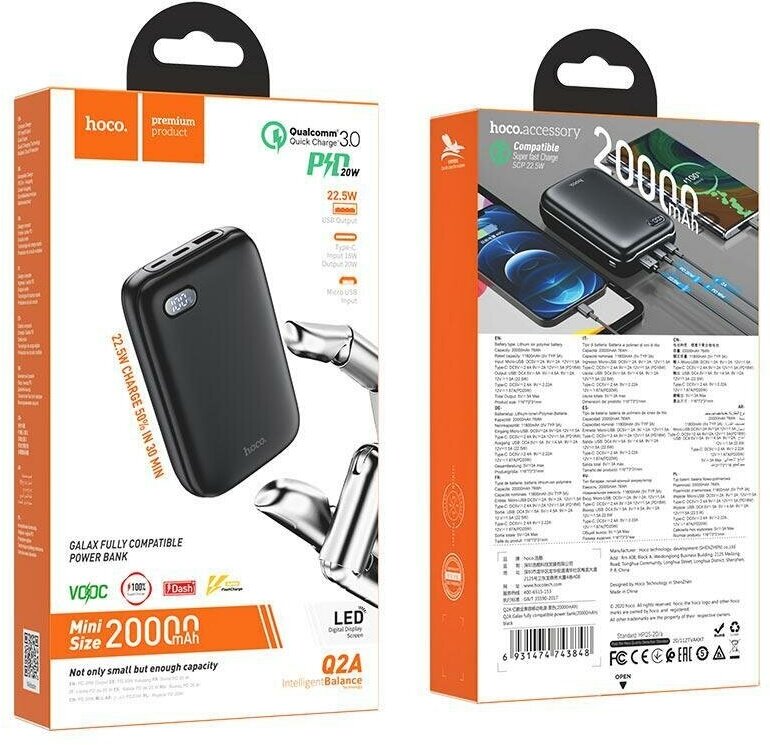External USB Hoco Q2A 20000 mAh/3A/QC3.0/PD