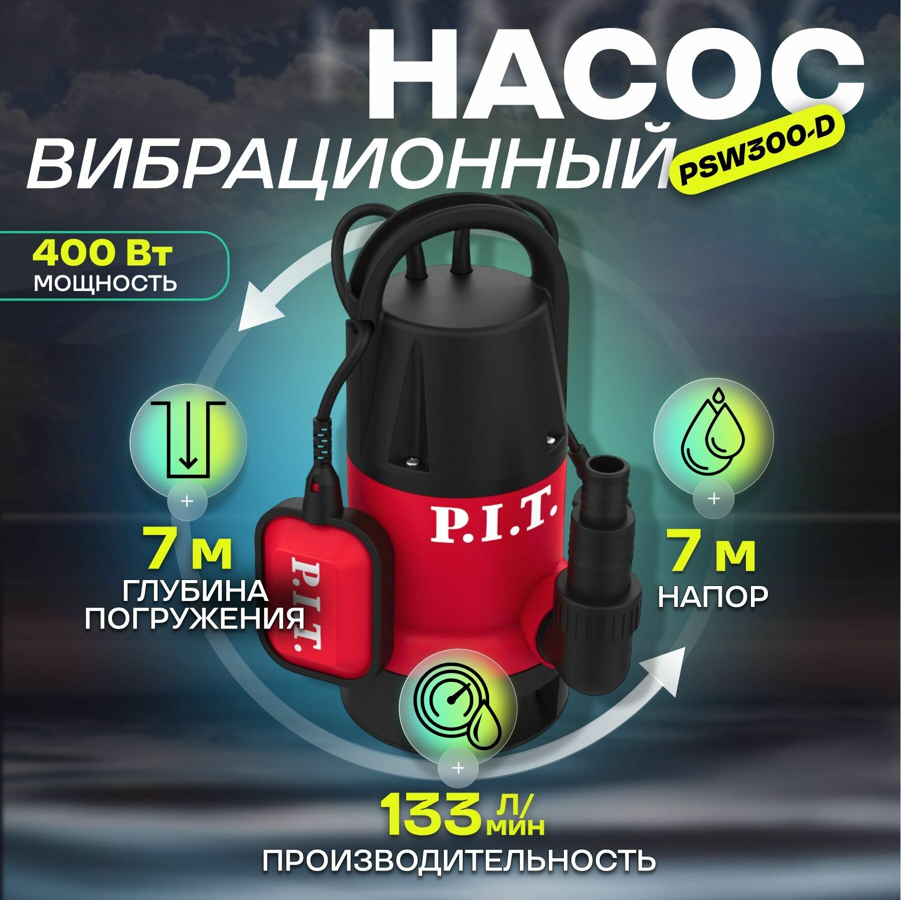 Drainage pump P.I.T. PSW400-W, 400 W, dirty water, pressure 7 m, 133 l/min, plastic