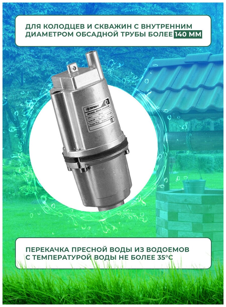 Type of submersible pump: well, water quality: clean, maximum pressure: 75 m, throughput: 1.05 m³/hour, immersion / suction depth: 3 m, depth to the water surface: 3 m, type: submersible