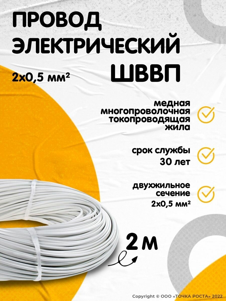 Electric cable ShVVP 2*0.5 mm, two-core, cross-section 0.5 mm, white, 2 m