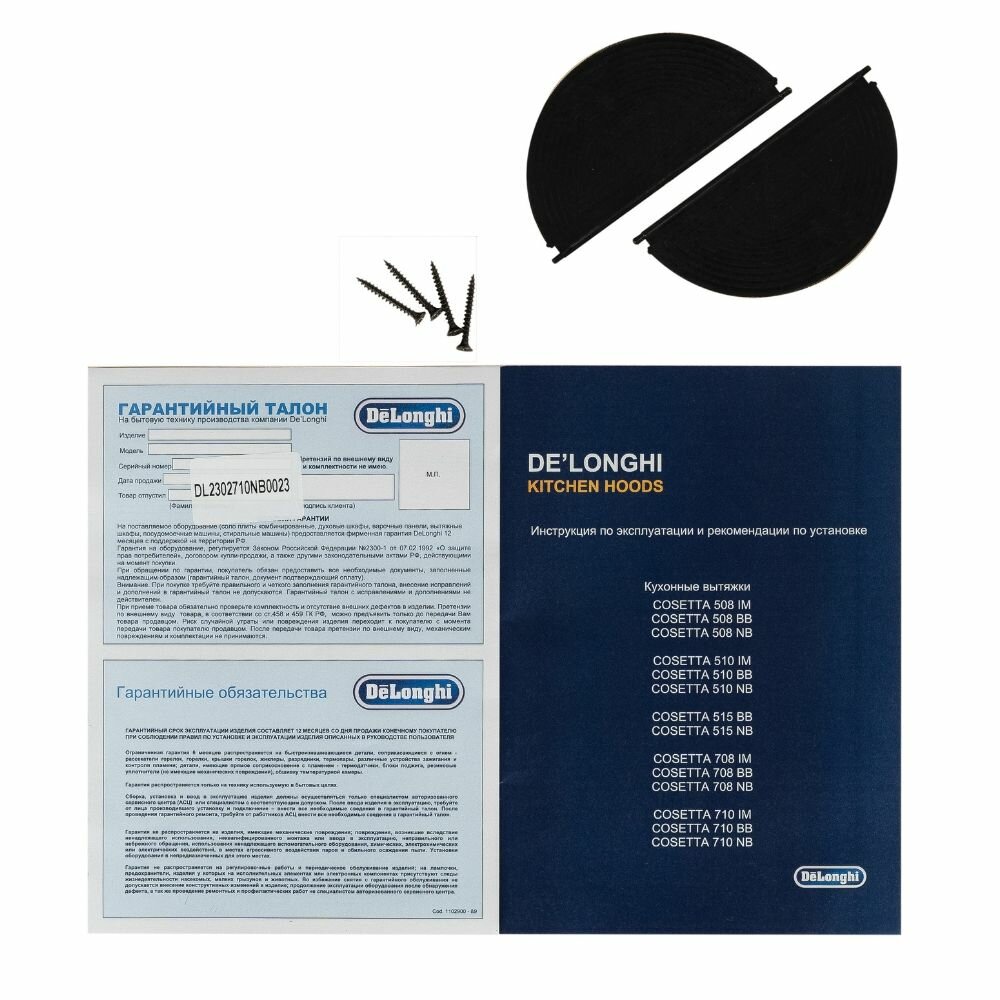 Aluminum grease filter, Fastening kit, Instructions, Warranty card