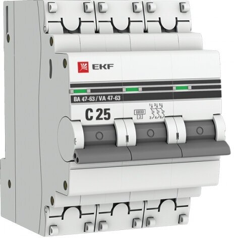 3P 25A characteristic C 6kA EKF VA47-63 PROxima packaging 4 pcs.