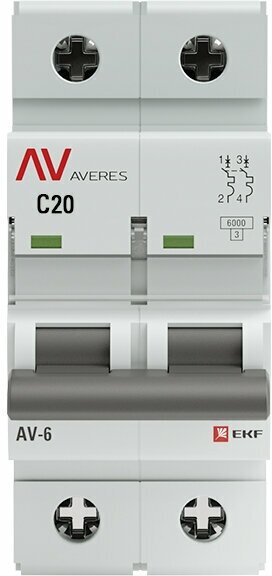 2p C 20A AV-6 6kA AVERES EKF mcb6-2-20C-av 6 pieces