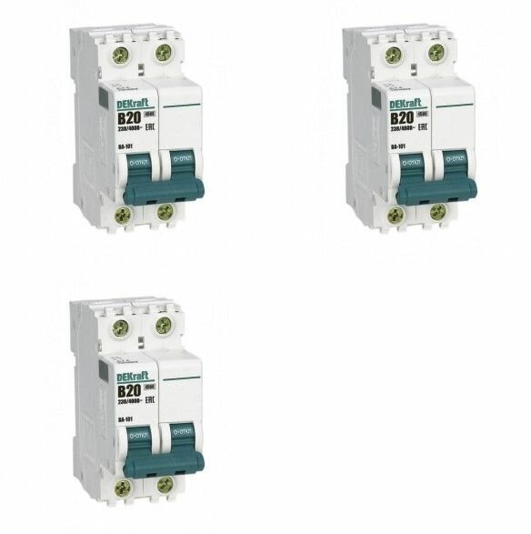Automatic 2P 20A characteristic B VA-101 4.5kA DEKraft packaging 3 pcs.