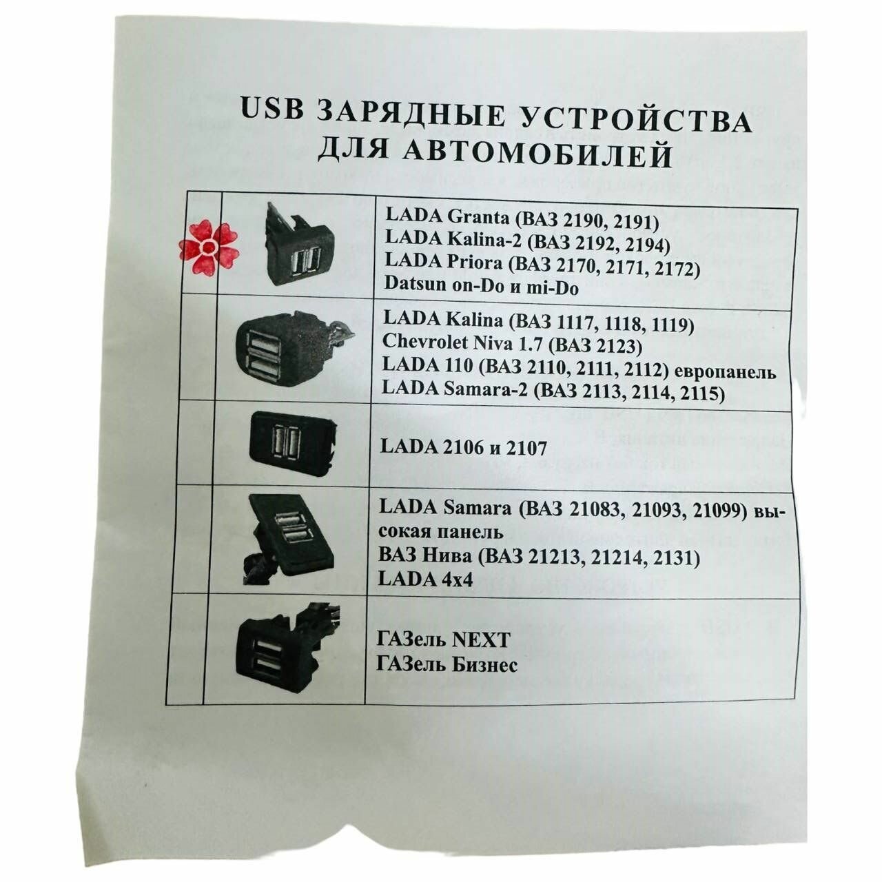 USB charger, 2 slots for Lada Priora, Granta, Granta FL, Kalina 2