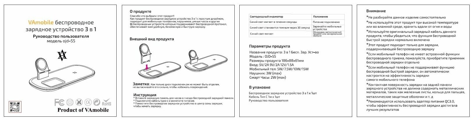 Wireless charger VAmobile OJD-55 3in1 15W / White