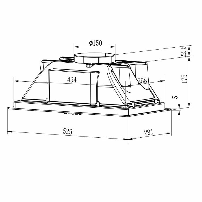 Built-in dimensions WxDxH mm: 525x291width x depth, mm
