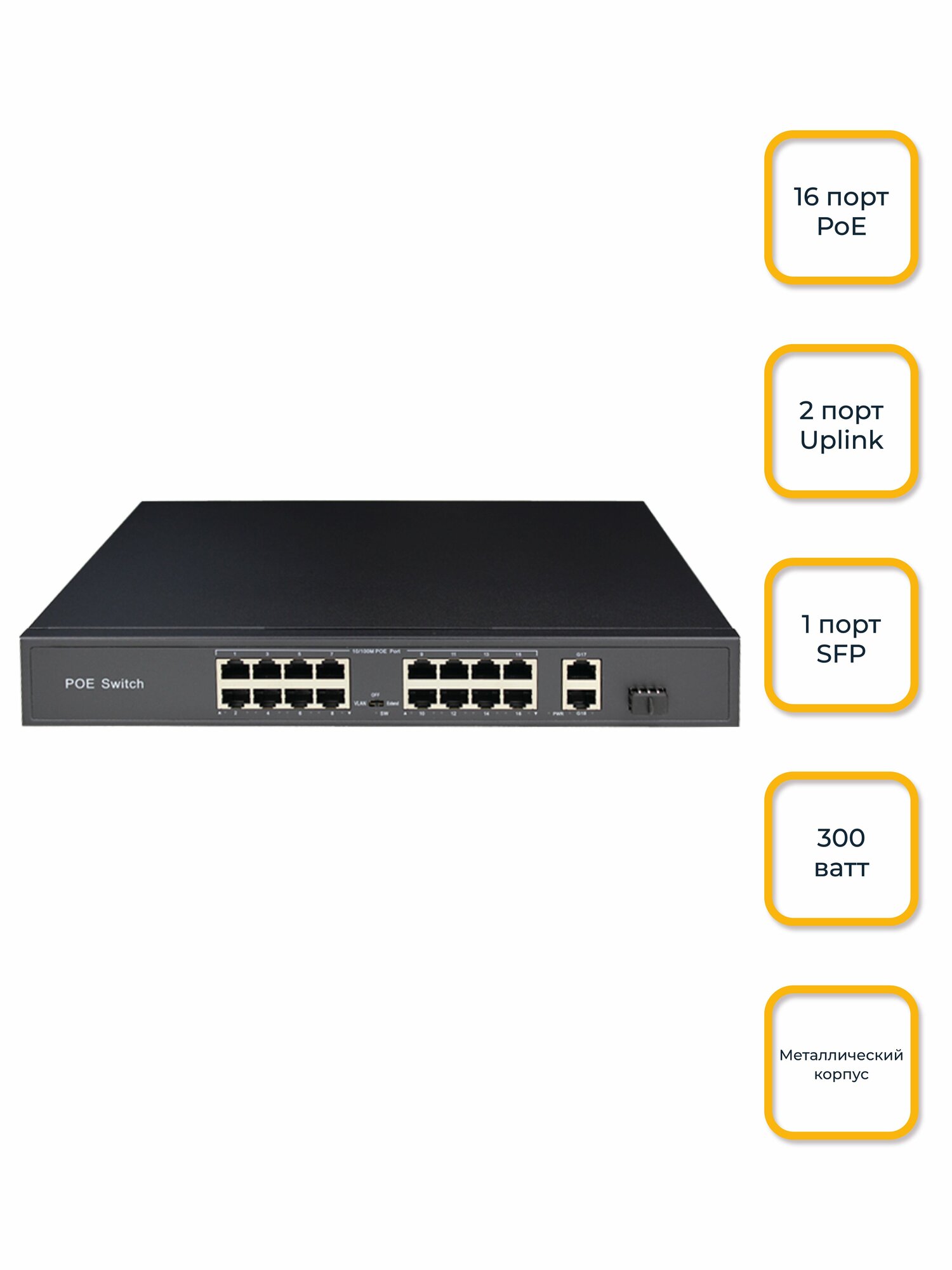 Number of LAN ports: 19, basic data transfer rate: 1 Gbit/s, network standards: IEEE 802.3af, IEEE 802.3at, IEEE 802.3u, IEEE 802.3x, switch management type: unmanaged