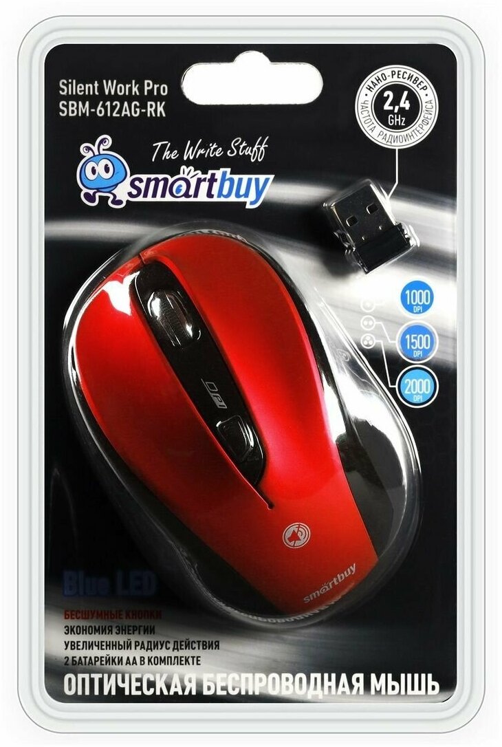 Wireless mouse Smartbuy 612AG, silent button operation, red, 5btn+Roll