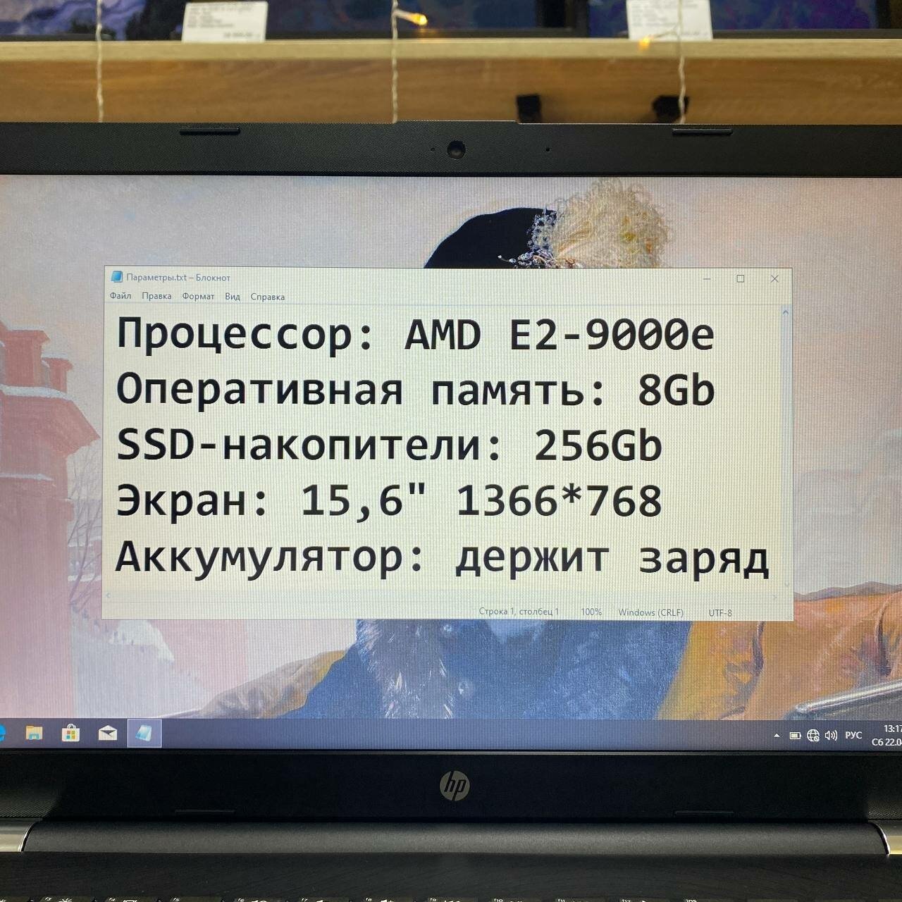 HP 15-BW028UR AMD E2-9000e x2 1.5-2.0GHz/DDR4 8Gb/SSD 256Gb/AMD Radeon R2-SMA/-15.6'@1366*768