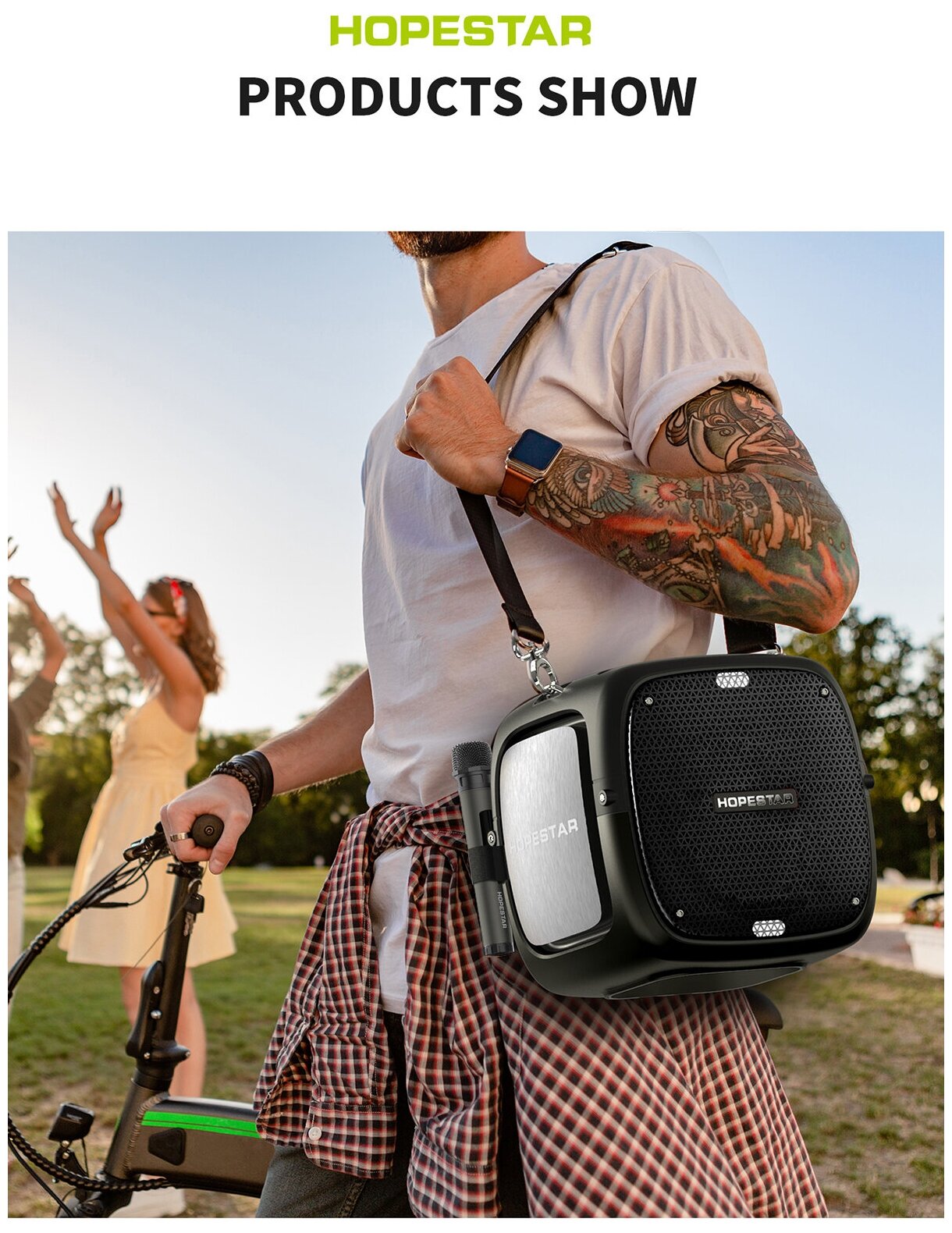 Type: 2.1, total power: 80 W, wireless connection: Bluetooth, connectors and interfaces: USB Type-A for flash drive, audio input mini jack 3.5 mm, microphone input - jack 6.3 mm, features: built-in microphone HandsFree function, Power Bank mode