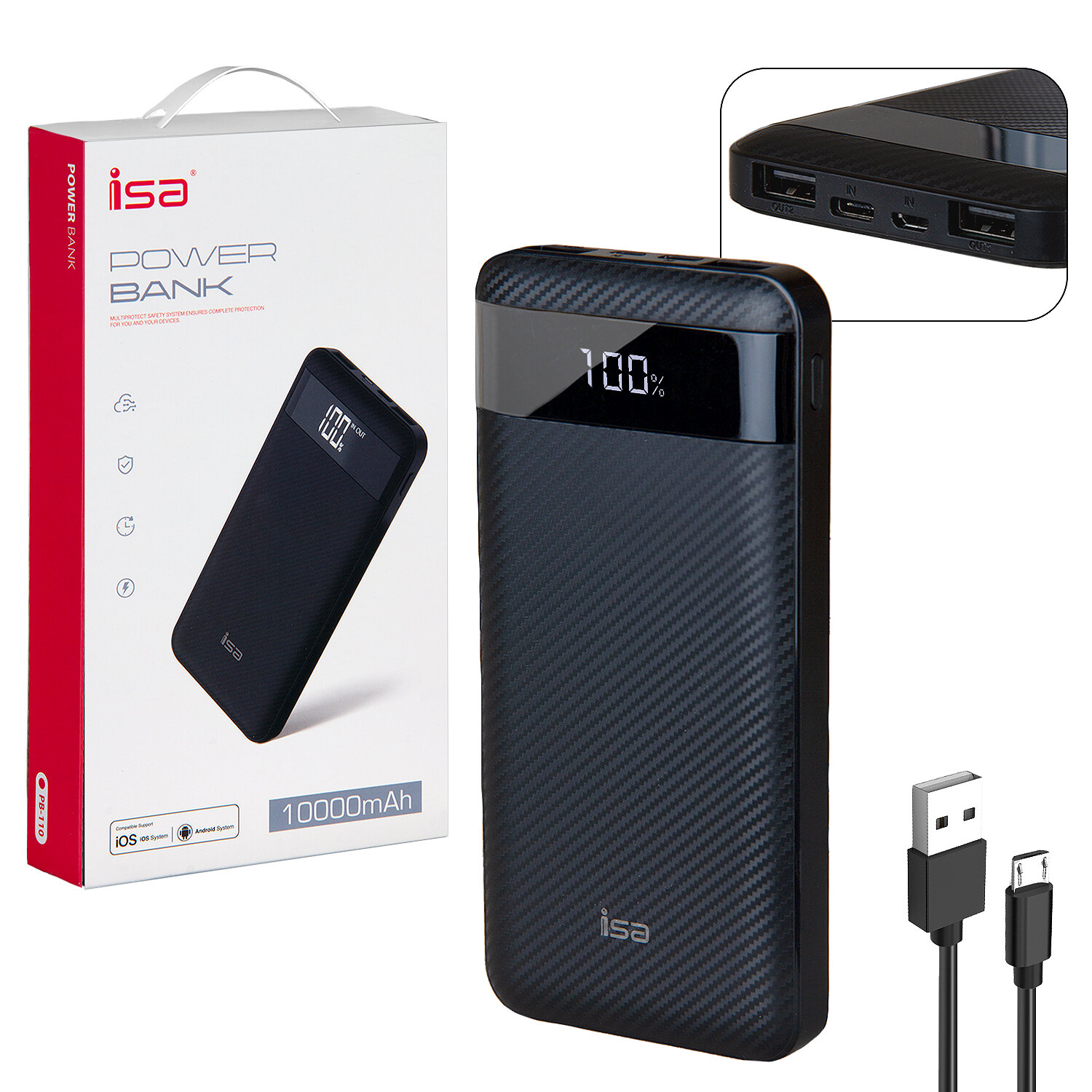 External battery, Micro USB cable, documentation