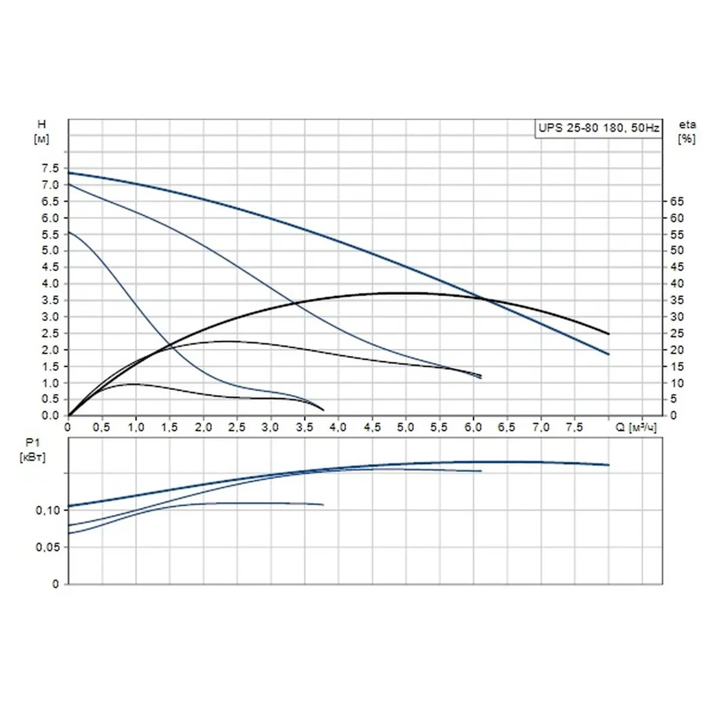 Circulation pump Grundfos UPS 25/80 with nuts - 1 pc., instruction manual - 1 pc., supplied in a box