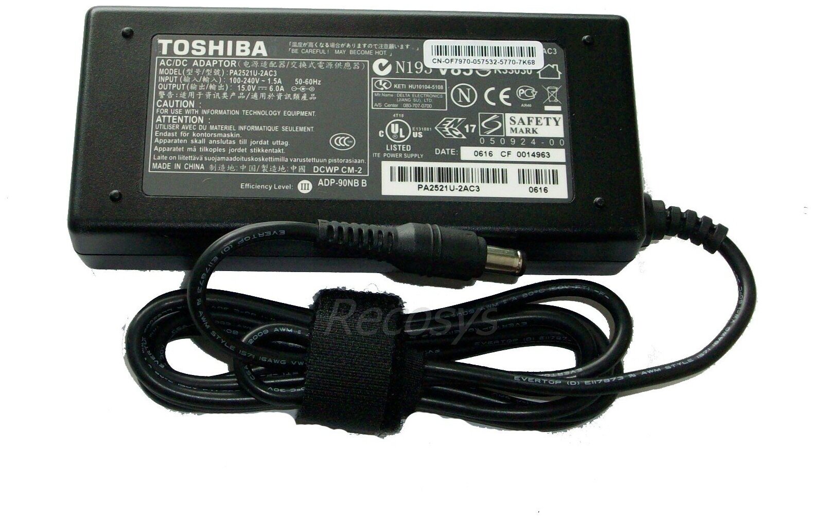 Type: laptop, compatibility: Toshiba, connectors: 6.3 x 3.0 mm, output voltage: 15 V, power: 90 W, max. current strength: 6 A
