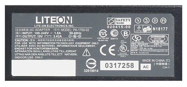 Description: Type: power supply, compatibility: Acer, connectors: 5.5 x 1.7 mm, output voltage: 19 V, power: 65 W, max. current: 3.42 A
