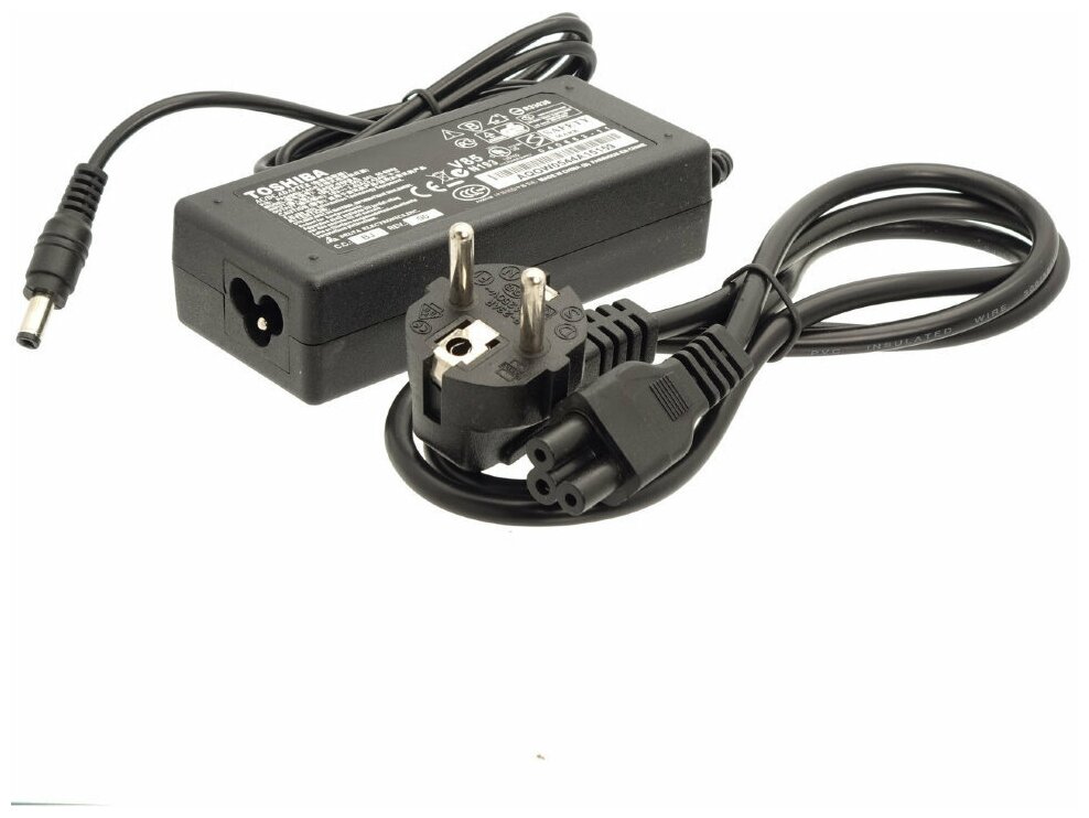 Type: for laptop, compatibility: Toshiba, connectors: 5.5 x 2.5 mm, DC 5.5 x 2.5 mm plug, output voltage: 19 V, 19, power: 65 W, max. current: 3.42 A, features: short circuit protection, overload protection, AC protection