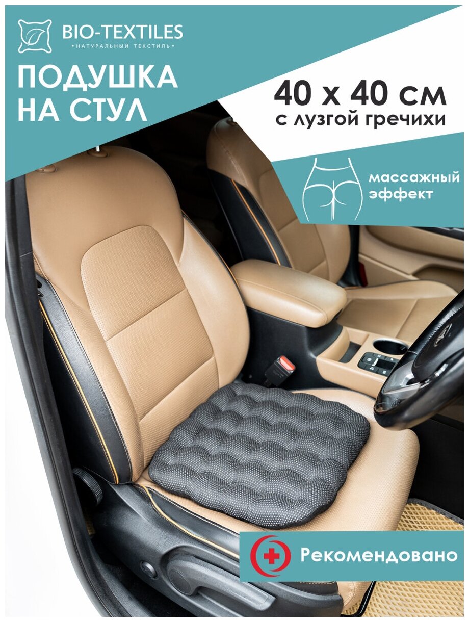 Purpose: on the seat, length: 40 cm, width: 40 cm, cover material: polyester, cotton, filling material: buckwheat husk, features: anatomical, orthopedic