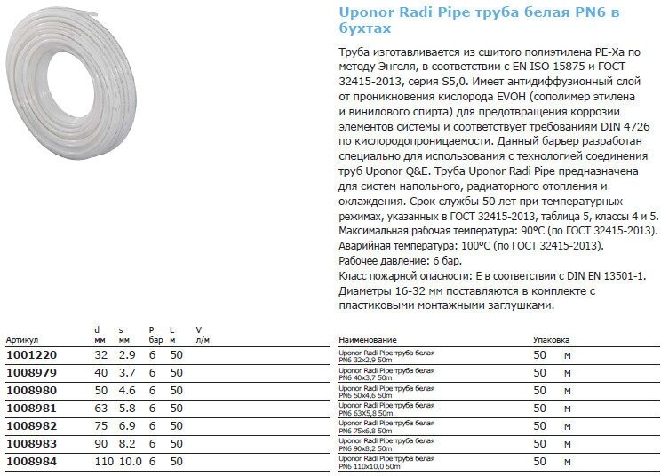 Uponor XLPE Radi Pipe PE-Xa/EVOH 20x2.8 PN10 coil 100m white universal
