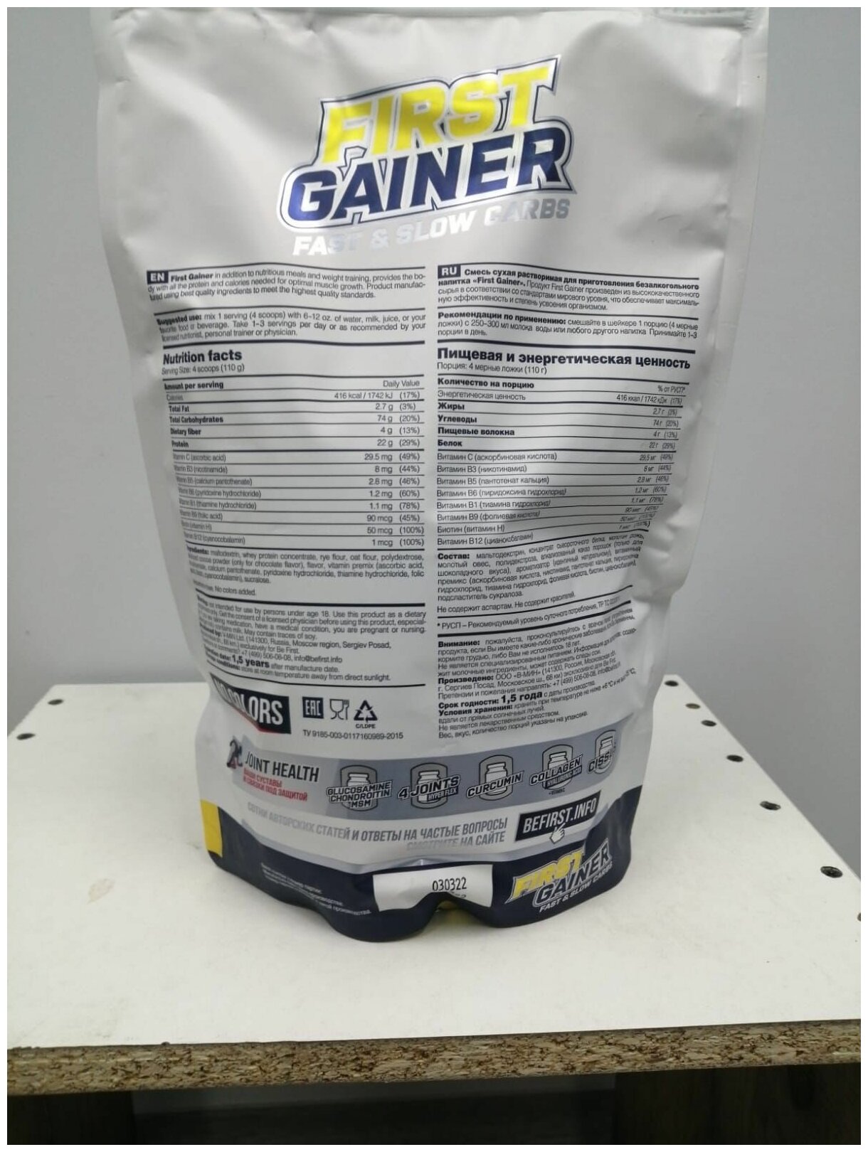 Suggested Use: Mix one serving of First Gainer Fast & Slow Carbs 5 scoops - 110 grams with 250-350 ml of water, milk or juice. On training days, it is recommended to take one serving in the morning, the second serving immediately after training.