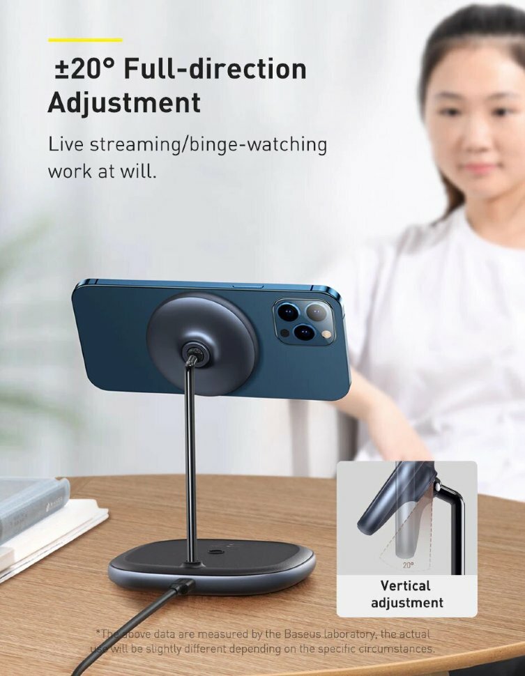 Base for wireless charging, AC adapter with connector, detachable cable, cable included