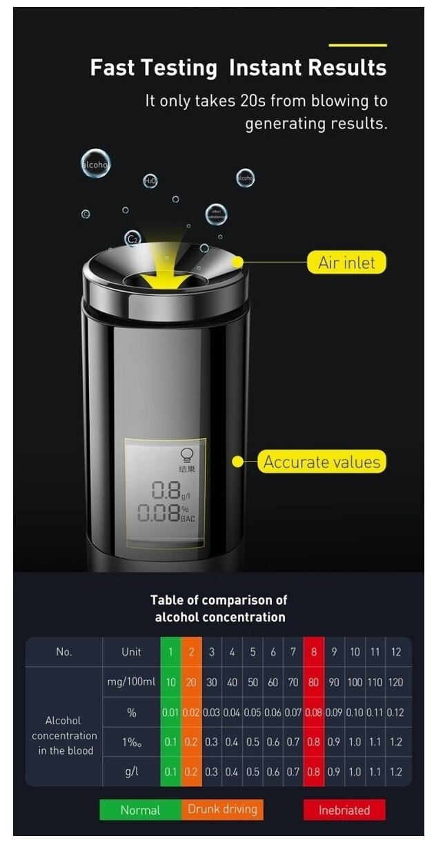Portable car breathalyzer Baseus Digital Alcohol Tester - CRCX-01