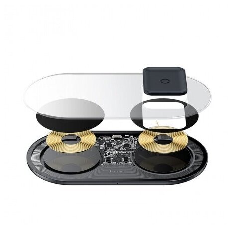 Wireless charger BASEUS Simple 2in1, 2A, 18W, transparent black