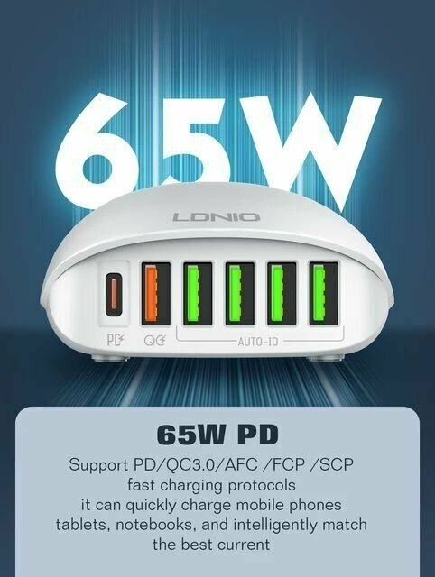 Number of sockets: 6, fast charging, fast charging standard: Qualcomm Quick Charge 3.0, maximum output current: 2.40A, features: fast charging, OCP overcurrent protection