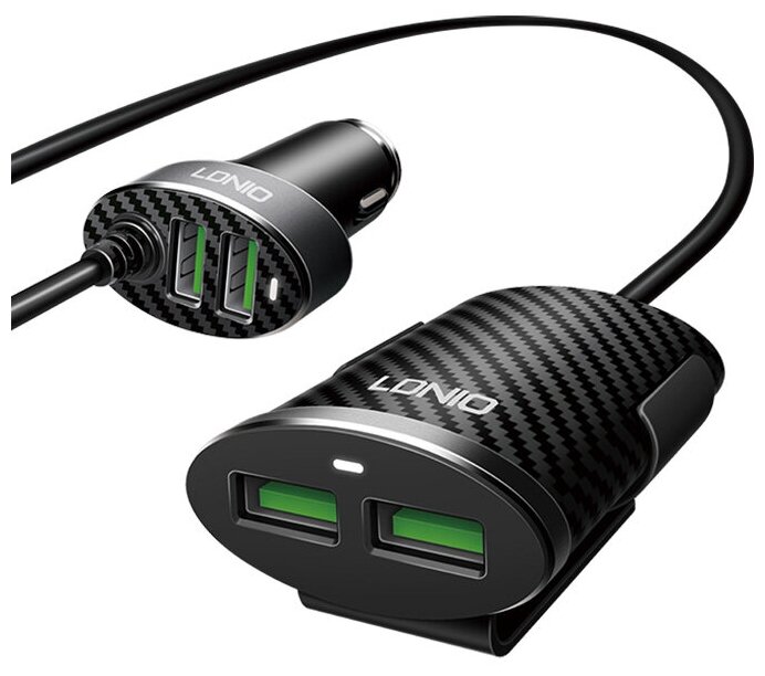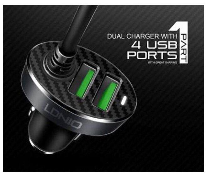 Cable connector: car cigarette lighter plug, number of connectors: 4, maximum output current: 5.10A, maximum output power: 25.50W, features: overheating protection, LED indicator