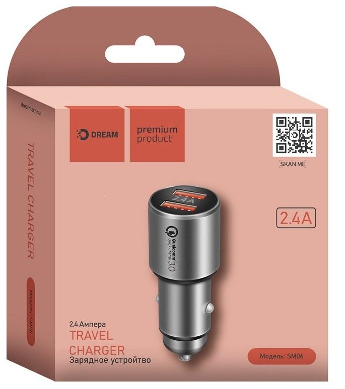 Cable connector: USB Type-A, number of connectors: 2, fast charging, maximum output current: 2.40 A, features: fast charging