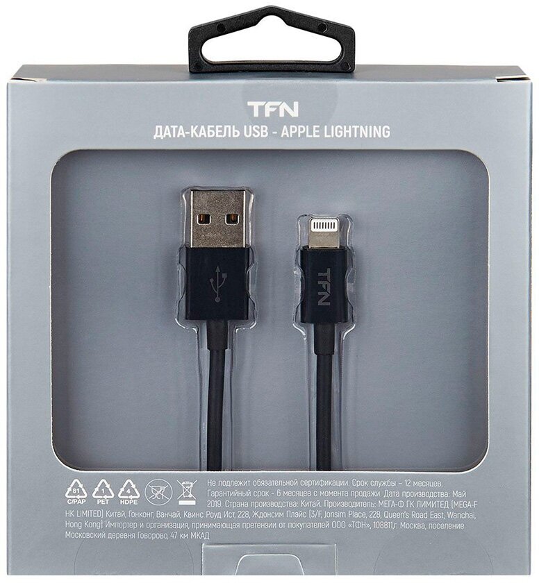 Cable TFN USB - Lightning 2A 1m. Black CLIGUSB1MTPBK