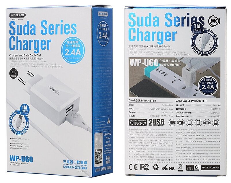 Mains charger, cable, packaging