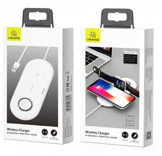 Usams US-CD119 Wireless Charger For Apple Watch & Mobiles & Earbuds 2IN1