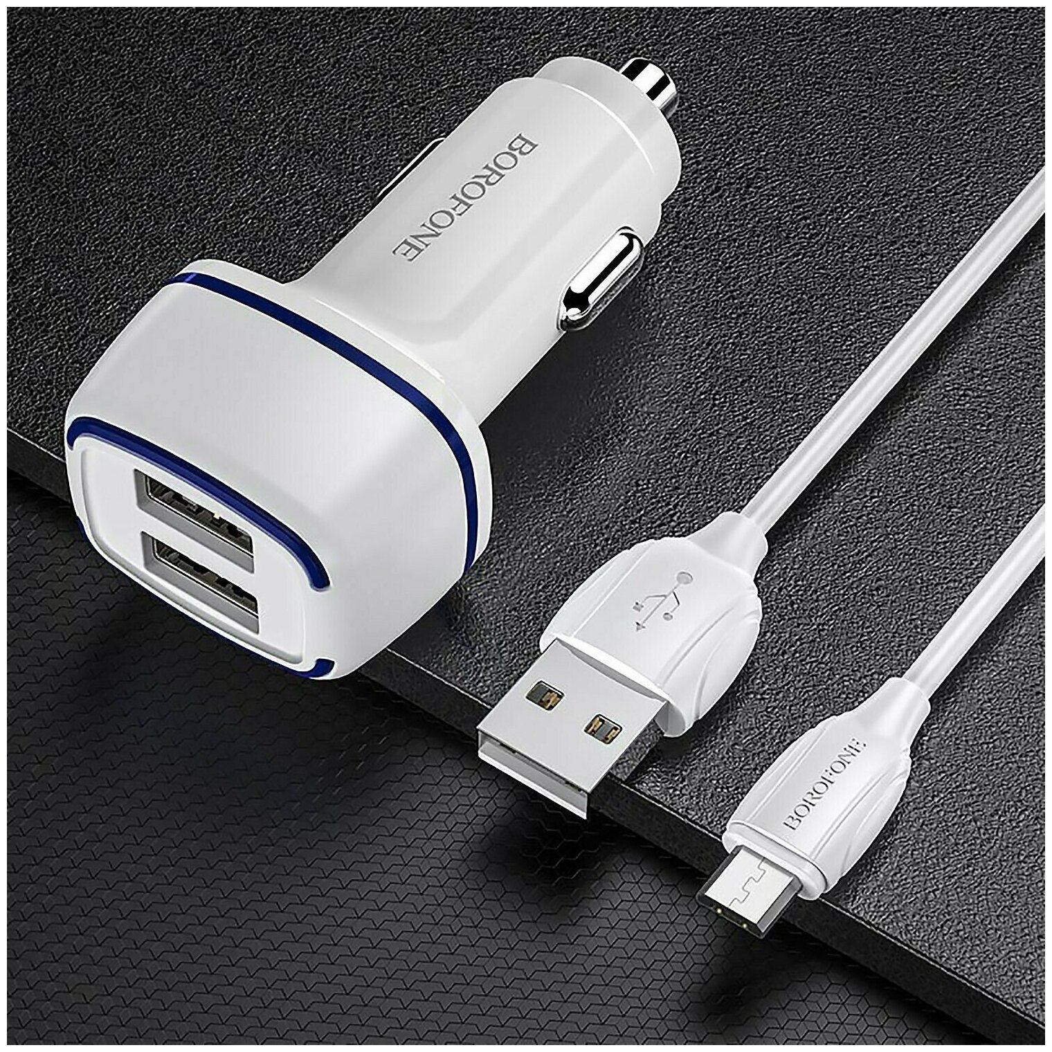 Car charger Borofone BZ14 Max 2USB with micro-USB cable white