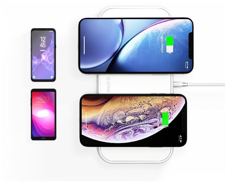 Wireless charger ZENS Dual Aluminum Wireless Charger. White color.