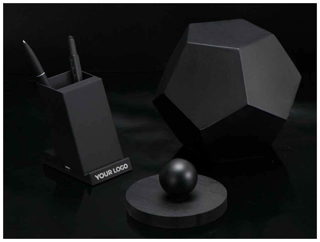 Wireless Charger Desktop Glow Box with Phone Holder and Stationery Drawer, Black