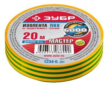 ZUBR PVC insulating tape, flame retardant, 10m 0.13x15mm, yellow-green ZUBR Electric-10, 1233-6_z02