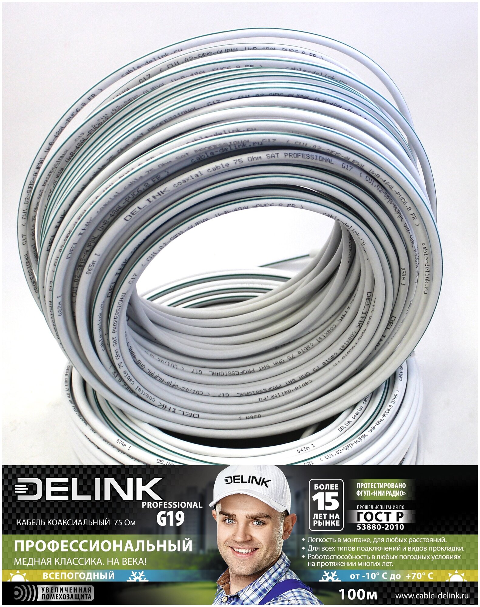 Coaxial subscriber cable Delink Coaxial cable DELINK 75 Ohm SAT PROFESSIONAL G19 100m CU1,02-S|F|S-AL|P|AL UnB-64AL-PVC6,8 FR