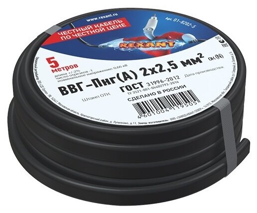 Power copper REXANT VVG-PngA 2x2.5mm? 5m GOST 31996-2012, TU 16-705.499-2010 01-8202-5 16124790