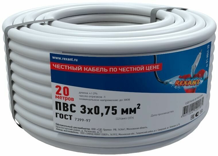 Power REXANT PVA Three-core 0.75 mm², 20 m