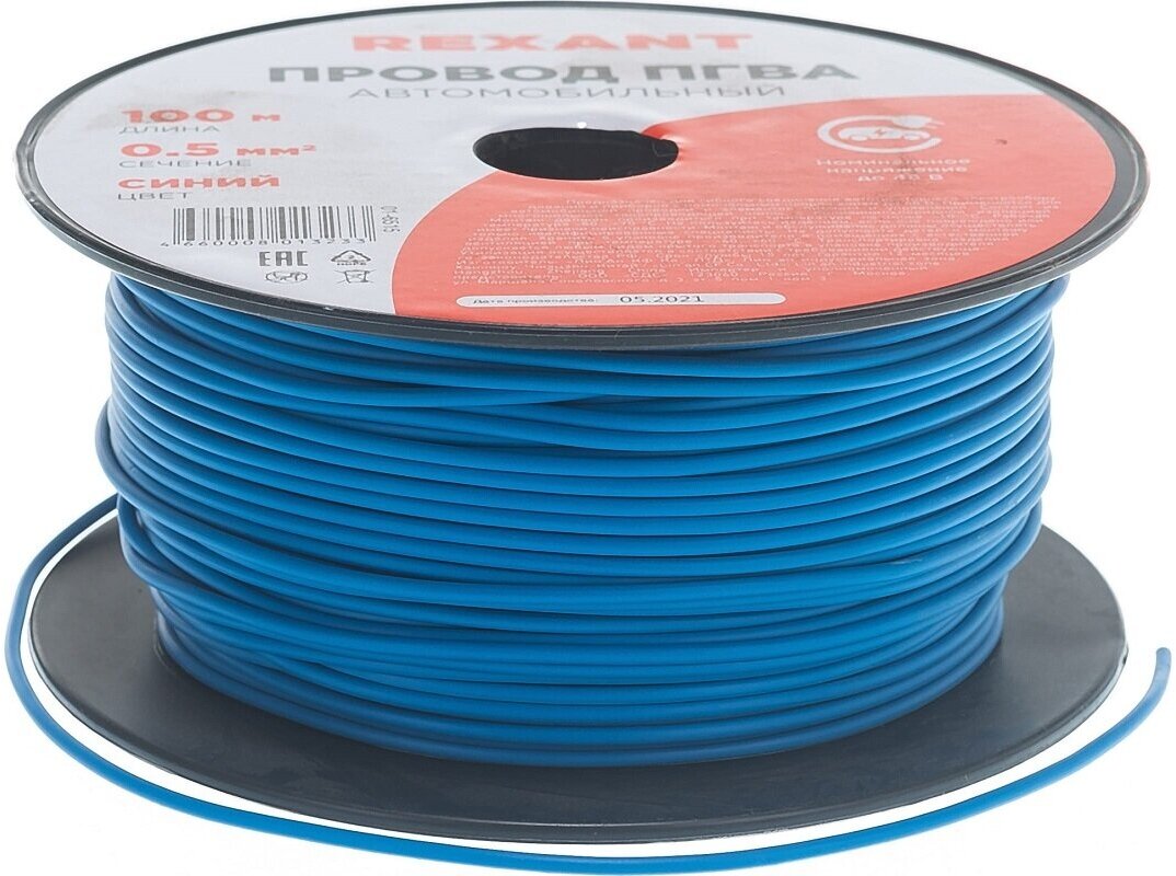 Wire Pgva 1x0.50 mm² coil 100 m blue Rexant, 1 pc