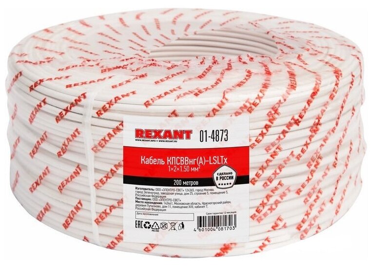 Security and fire REXANT kpsvvngA-LSLTx 1x2x1.50mm² 200m 01-4873