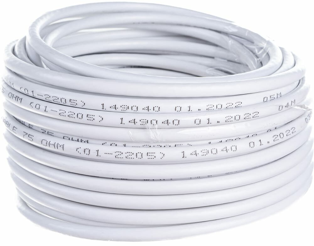 Coaxial RG-6U 75 Ohm 0.9 steel/copper core, 48x0.12 aluminum 20m white PROCONNECT, 01-2205-20